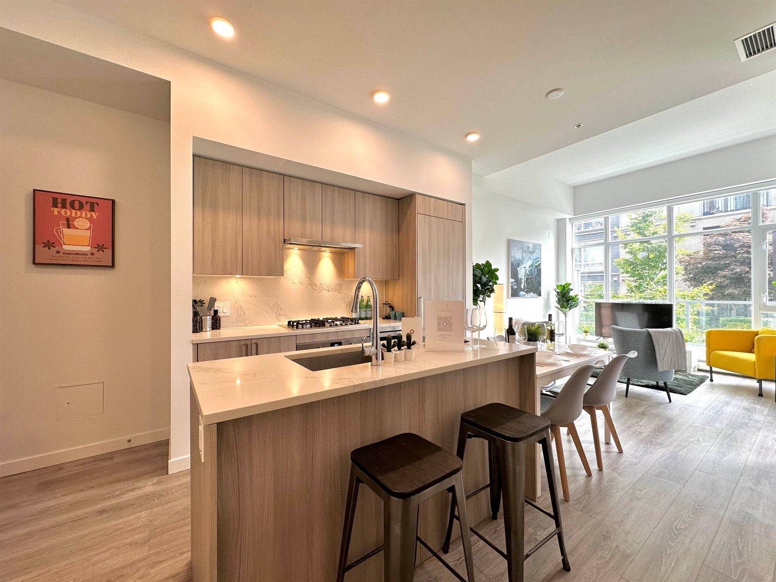 Come home to One Central in North Surrey. This modern townhouse offers 1130 sqft of contemporary living space, high ceilings, Low-E glazed windows, custom roller blinds and dual entrances. Open concept main level features gourmet kitchen with European appliance package flowing seamlessly into the dining and living room areas ideal for relaxation and entertainment. Flex room ideal for home office or studio. Floor-to-ceiling windows offer plenty of natural light. Bedrooms on upper level for maximum privacy plus elegant bathrooms for comfort and convenience. One Central's lifestyle amenities include the One Club with indoor/outdoor sky lounge, Sky Fitness, the Coworking & Study Lounge, the Cube fitness & yoga center, plus full time Concierge. Home is easy to show, call now for an appointment!