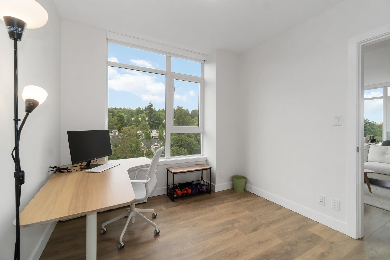 Welcome to this 2Bed+2Bath+Flex northeast BRIGHT CORNER SUITE in One Town Centre by Wesgroup. A haven of natural light offering scenic NATURE+MOUNTAIN views. Refreshing layout ft. gourmet kitchen w/ Jenn-Air appliances, gas stove, quartz counters & large breakfast bar. Primary bdrm ft luxurious spa-like ensuite w/ radiant FLOOR HEATING & large walk-in closet. Fully ventilated w. A/C+heating w/ Nest for year-round comfort. FLEX ROOM perfect for office or pantry & LARGE CORNER BALCONY for fabulous BBQ+hosting. Short walk to restaurants+groceries and Club Central's RESORT STYLE AMENITIES w. EXCLUSIVE gym, aquatic centre w/ pool, sauna & steam room, basketball/squash courts, amenity lounge, kids party room, rooftop garden & guest suites. Home includes 1 PARKING + SPACIOUS PRIVATE STORAGE ROOM.