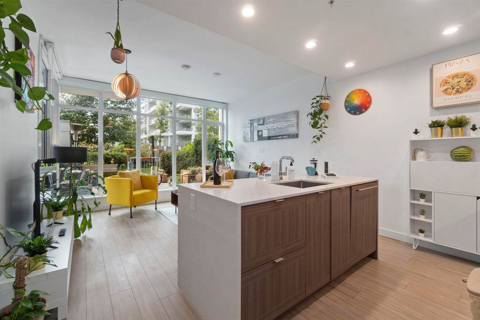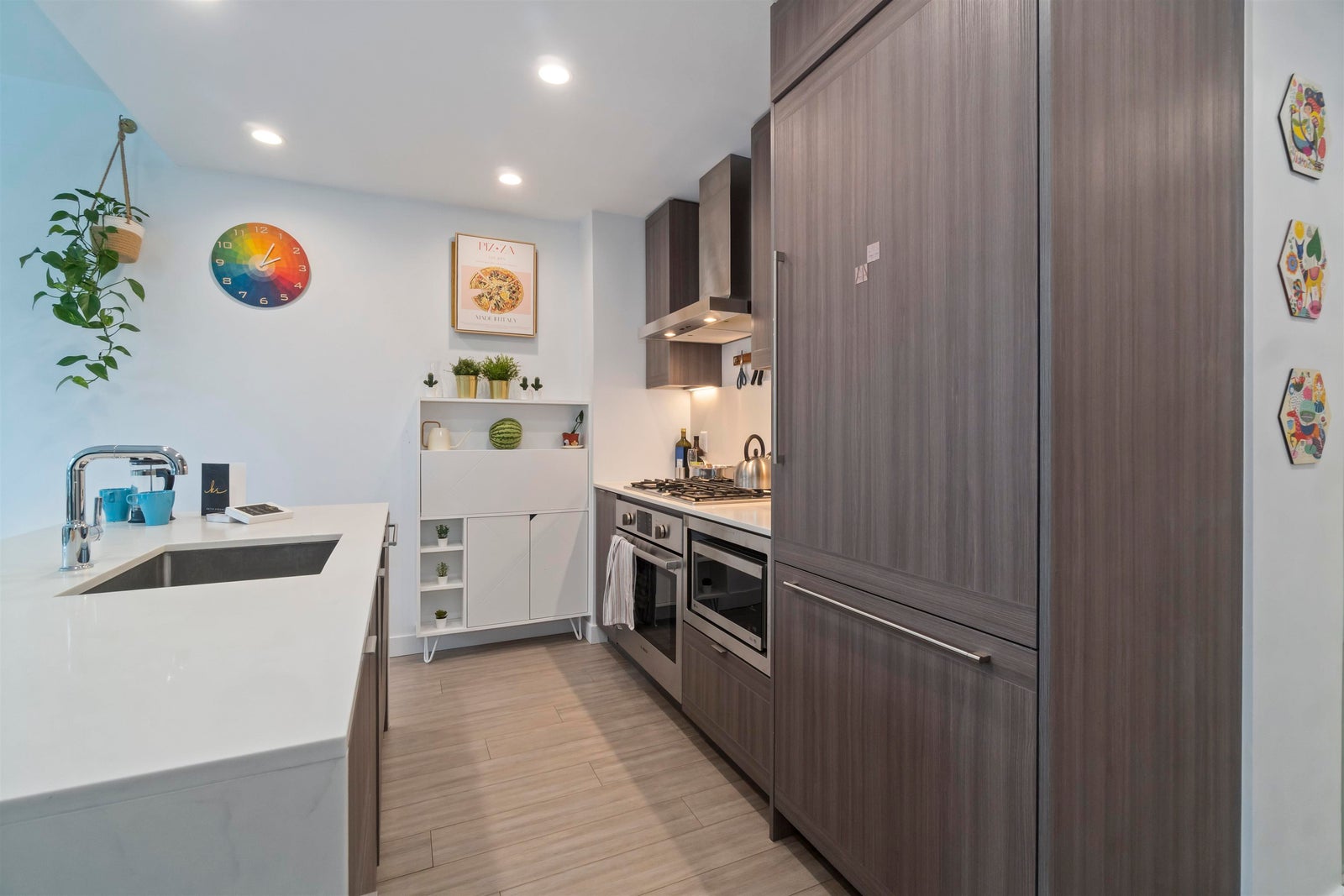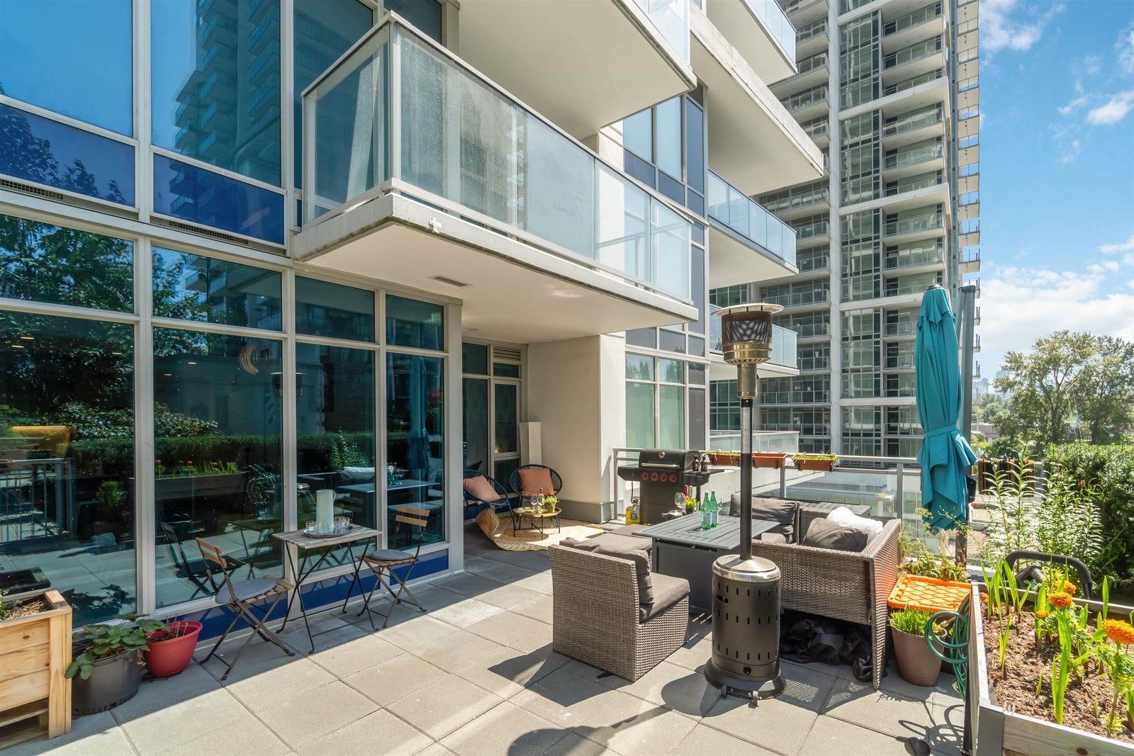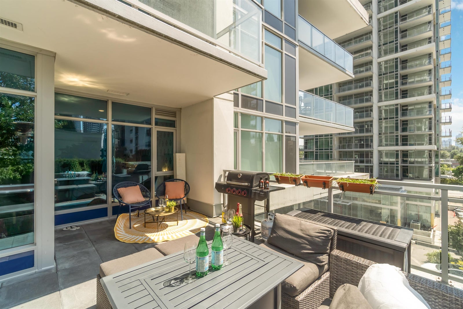 Welcome to 2311 Beta Ave - The Waterfall in Brentwood. Walk into this bright and cozy west-facing junior 2-bed with a view of its lush private patio. Luxurious features include Bosch appliances with gas cooktop, quartz counters, under-cabinet lighting, laminate flooring, floating vanities, and AC for year-round comfort. The versatile 2nd bedroom is perfect for a home office or guest room (no closet/window). Enjoy your 24/7 concierge, gym, party room, and terrace with BBQ and greenspace. Live in the heart of the thriving Brentwood community within steps to the Amazing Brentwood Mall, SkyTrain, Whole Foods and more for ultra convenient shopping and dining experiences. This home comes with one parking stall and storage locker. Visit our weekend open house or call to book your private viewing!