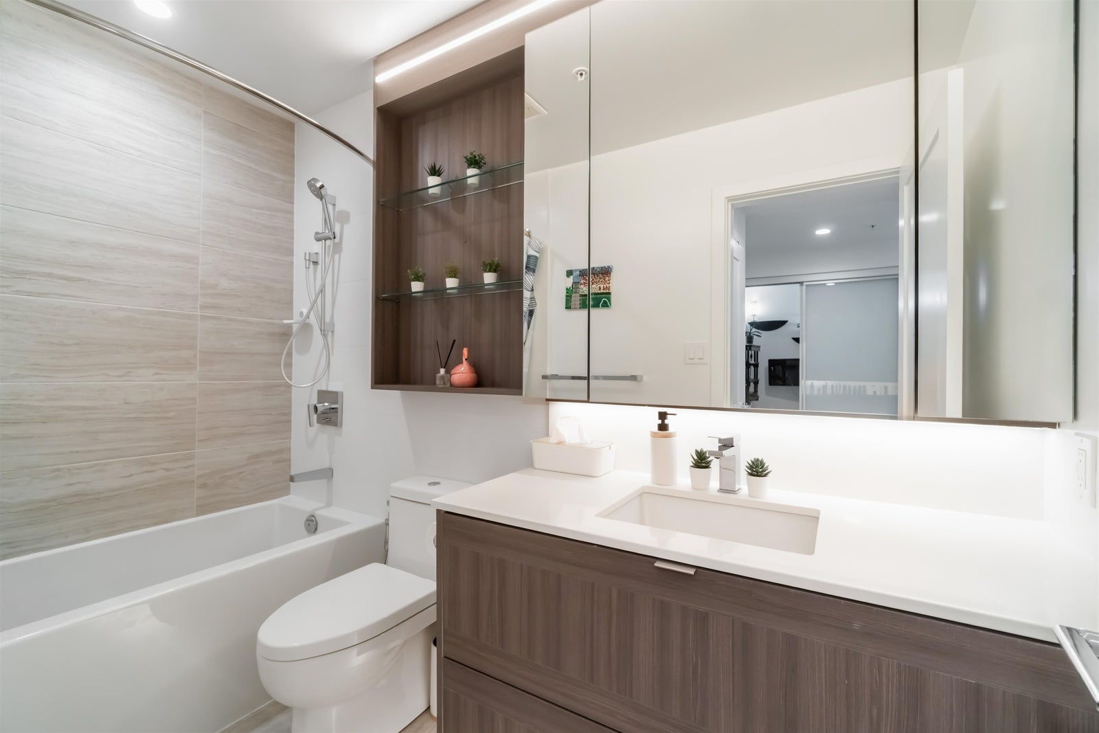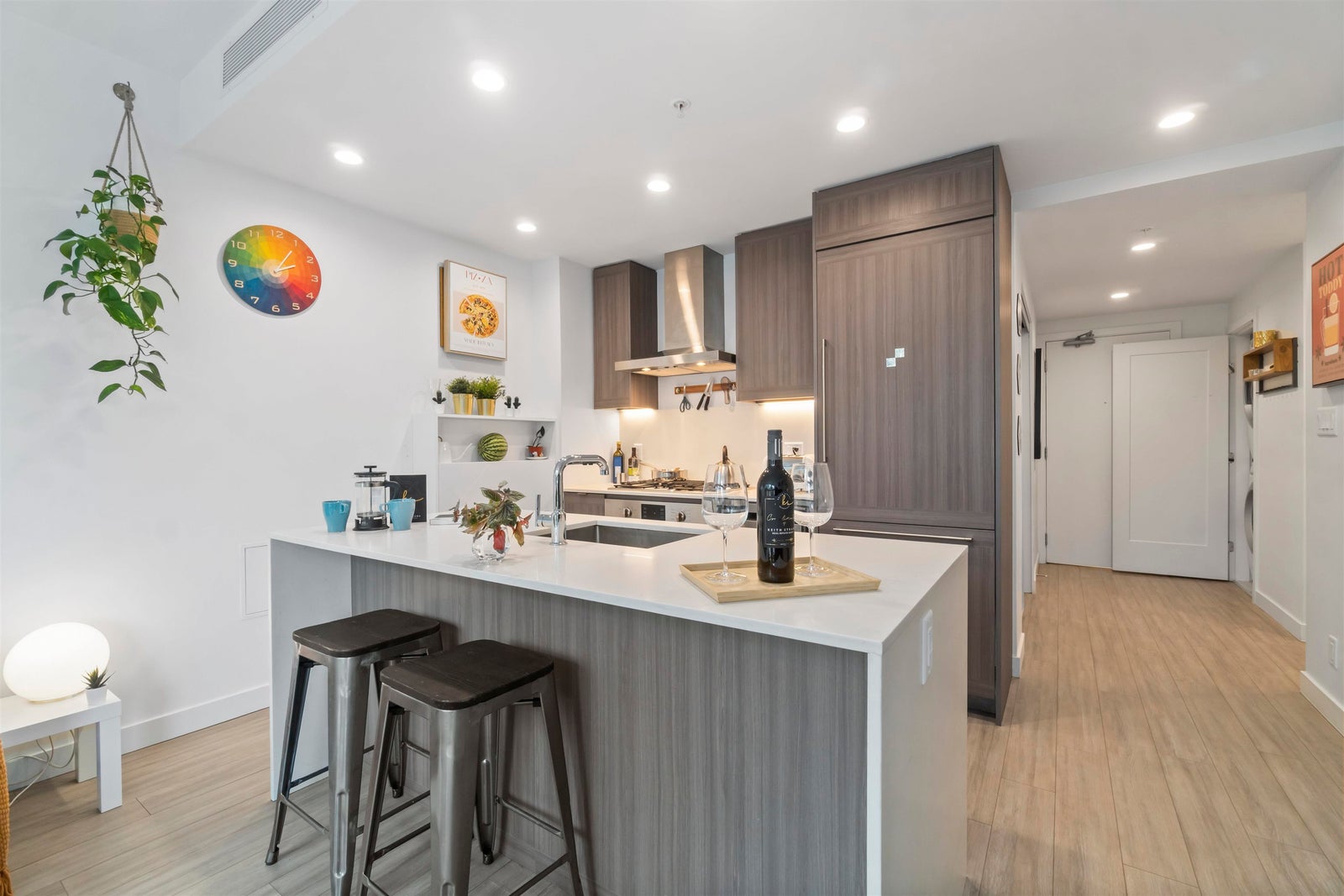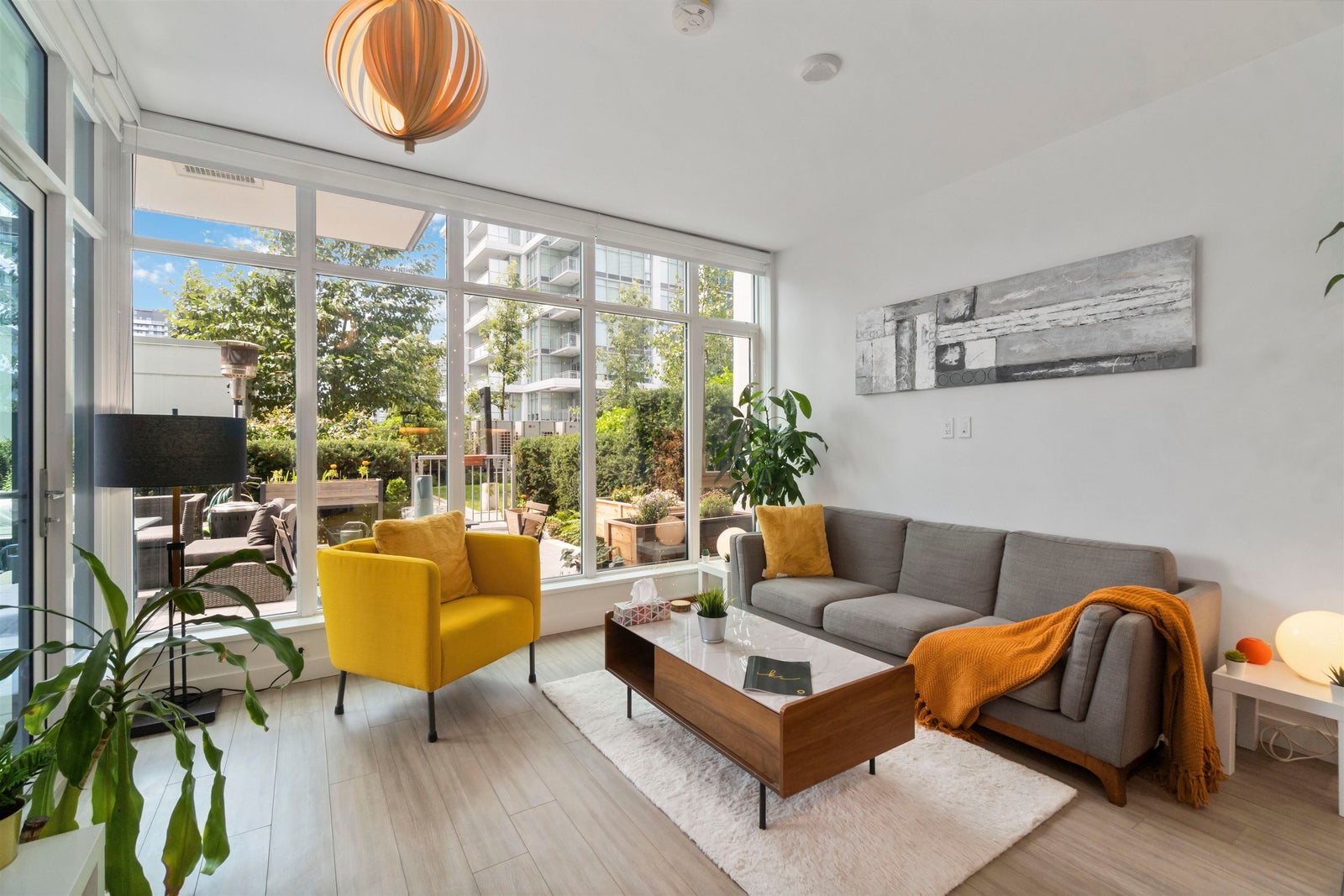 Welcome to 2311 Beta Ave - The Waterfall in Brentwood. Walk into this bright and cozy west-facing junior 2-bed with a view of its lush private patio. Luxurious features include Bosch appliances with gas cooktop, quartz counters, under-cabinet lighting, laminate flooring, floating vanities, and AC for year-round comfort. The versatile 2nd bedroom is perfect for a home office or guest room (no closet/window). Enjoy your 24/7 concierge, gym, party room, and terrace with BBQ and greenspace. Live in the heart of the thriving Brentwood community within steps to the Amazing Brentwood Mall, SkyTrain, Whole Foods and more for ultra convenient shopping and dining experiences. This home comes with one parking stall and storage locker. Visit our weekend open house or call to book your private viewing!