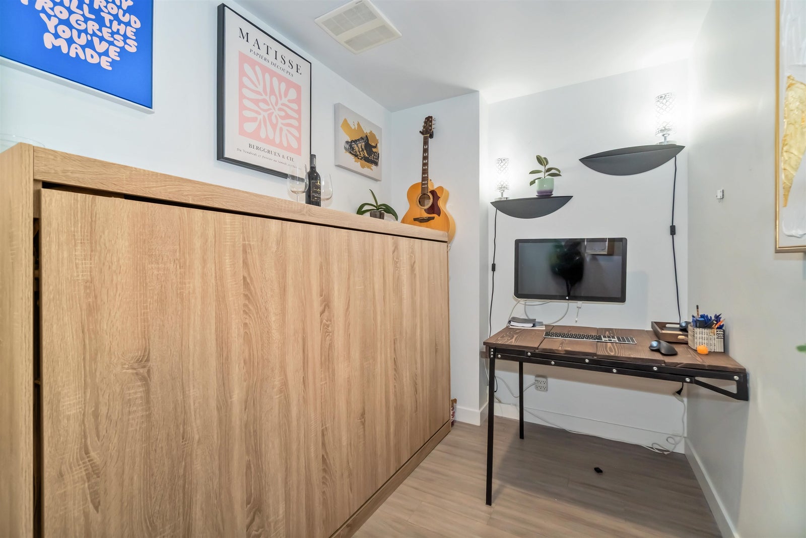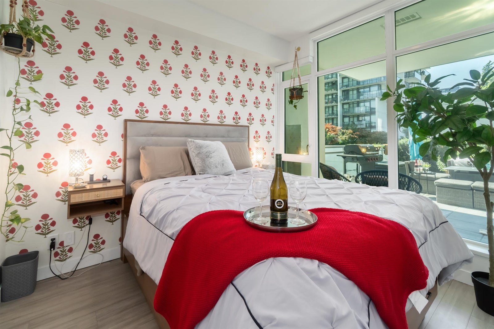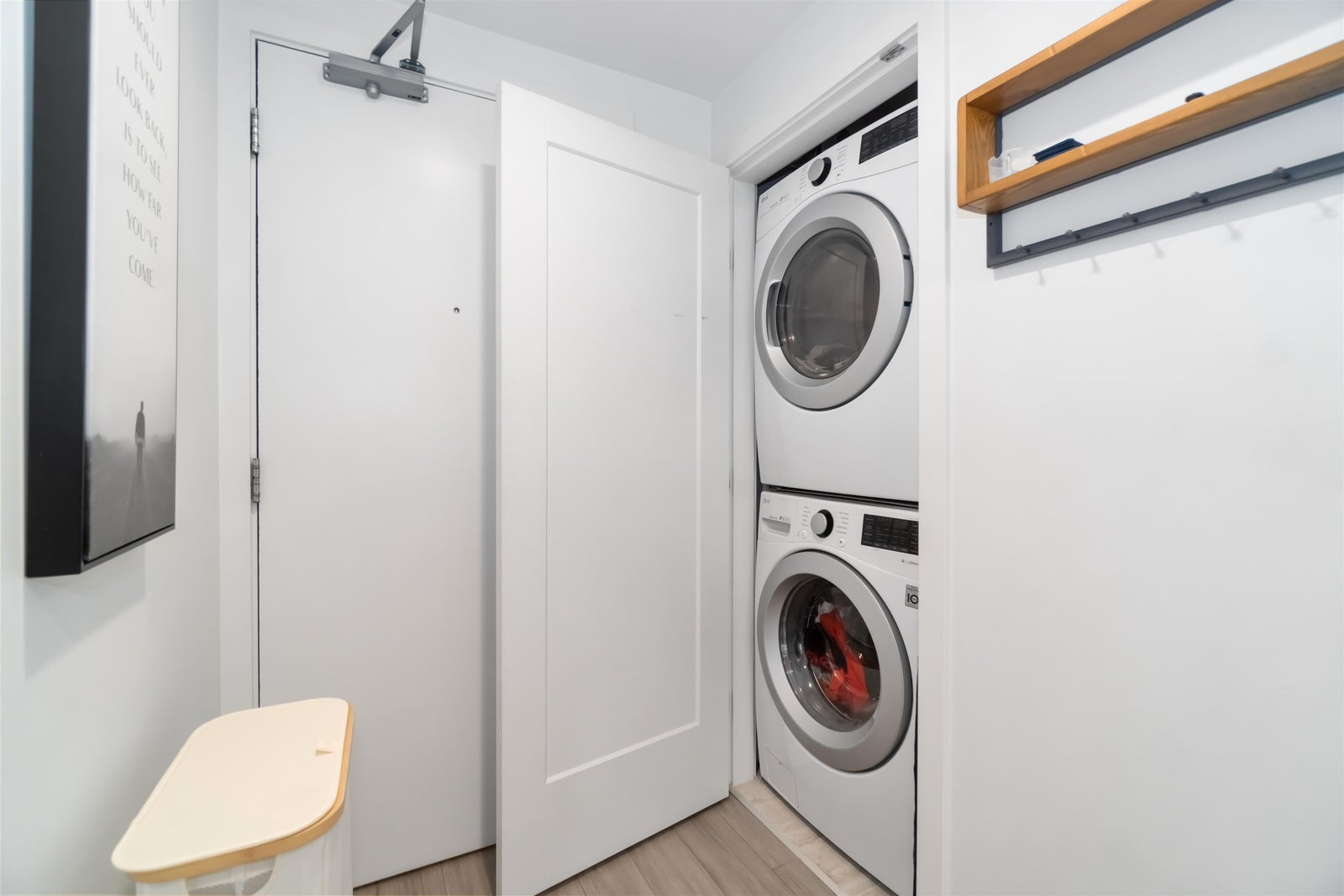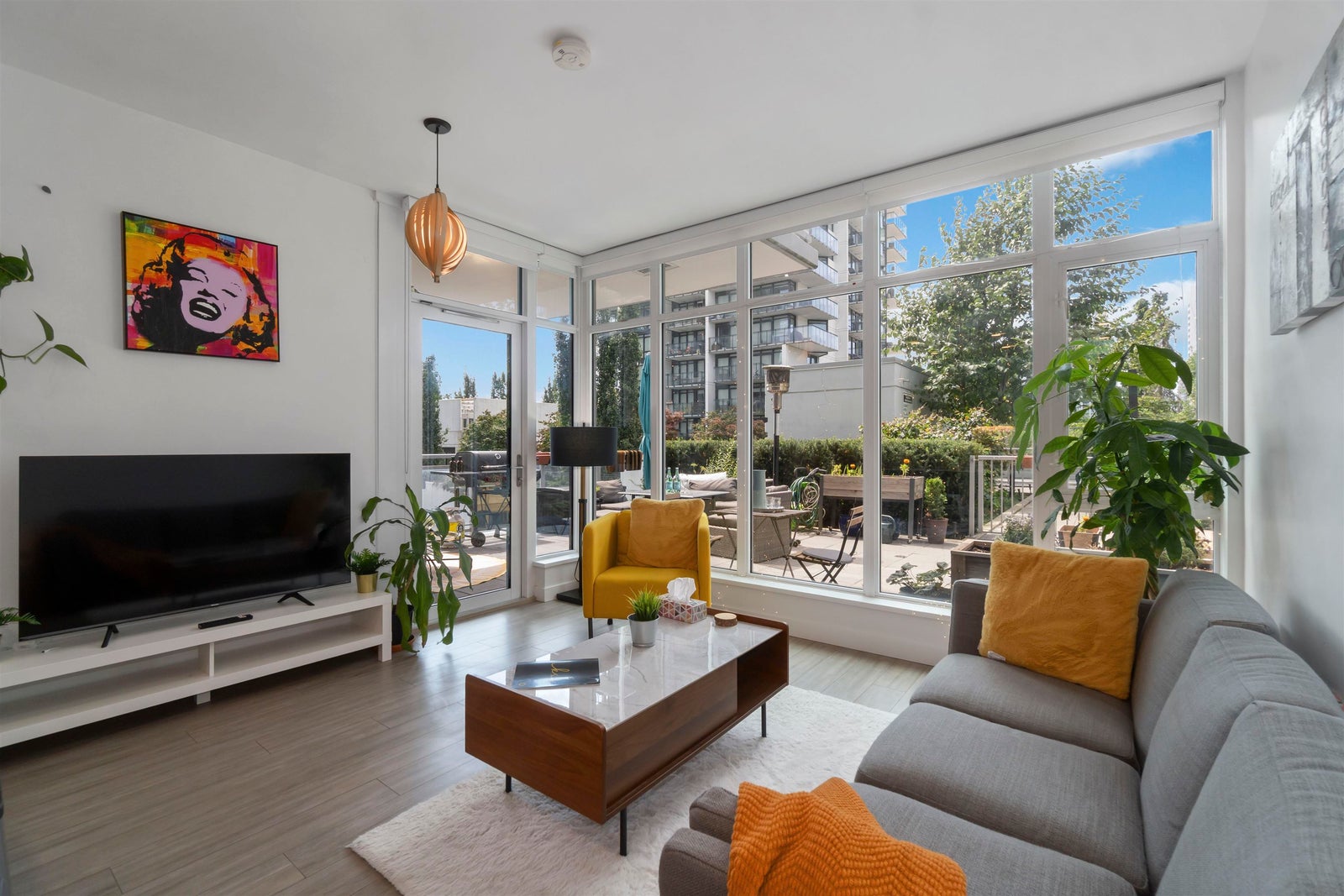 Welcome to 2311 Beta Ave - The Waterfall in Brentwood. Walk into this bright and cozy west-facing junior 2-bed with a view of its lush private patio. Luxurious features include Bosch appliances with gas cooktop, quartz counters, under-cabinet lighting, laminate flooring, floating vanities, and AC for year-round comfort. The versatile 2nd bedroom is perfect for a home office or guest room (no closet/window). Enjoy your 24/7 concierge, gym, party room, and terrace with BBQ and greenspace. Live in the heart of the thriving Brentwood community within steps to the Amazing Brentwood Mall, SkyTrain, Whole Foods and more for ultra convenient shopping and dining experiences. This home comes with one parking stall and storage locker. Visit our weekend open house or call to book your private viewing!