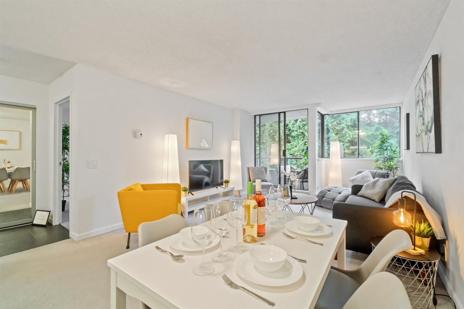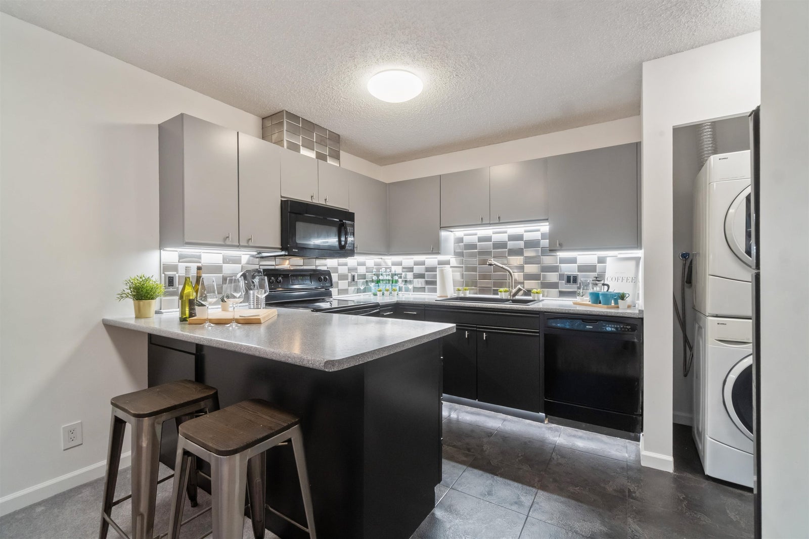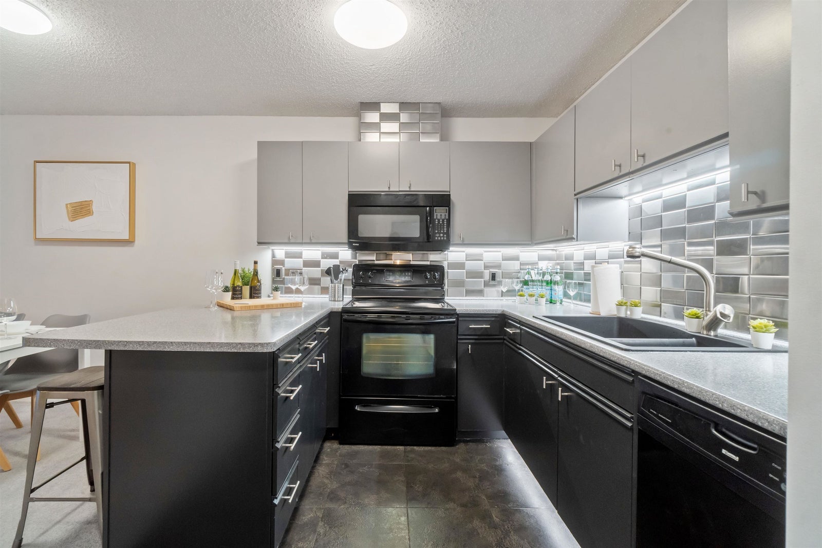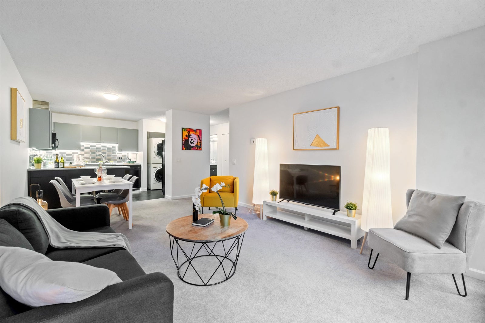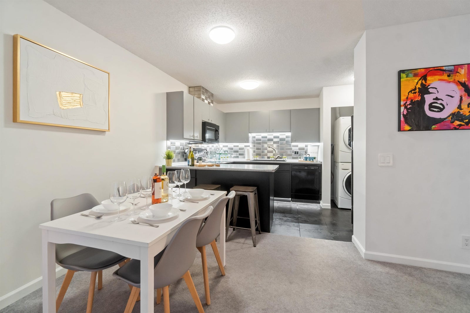 Welcome home to 3970 Carrigan Court – Discovery Place II. This spacious 1-bedroom home offers nearly 800 sqft of bright living space. Enjoy an oversized bedroom with walk-in closet and nook, open dining and living areas, plus in-suite laundry. Recent updates include fresh paint, new washer and dryer, stylish backsplash tiles, upgraded kitchen and bathroom lighting, new sinks in both kitchen and bathroom, new carpet, baseboard heaters, and updated light switches and outlets. Completely turn-key — nothing to fix, just move in and enjoy. The location is unbeatable — just steps to Lougheed Mall, SkyTrain, and bus loop for quick access across Metro Vancouver. Surrounded by shopping, dining, and cafés, this home blends comfort and convenience. Perfect home for starters, downsizers and investors.
