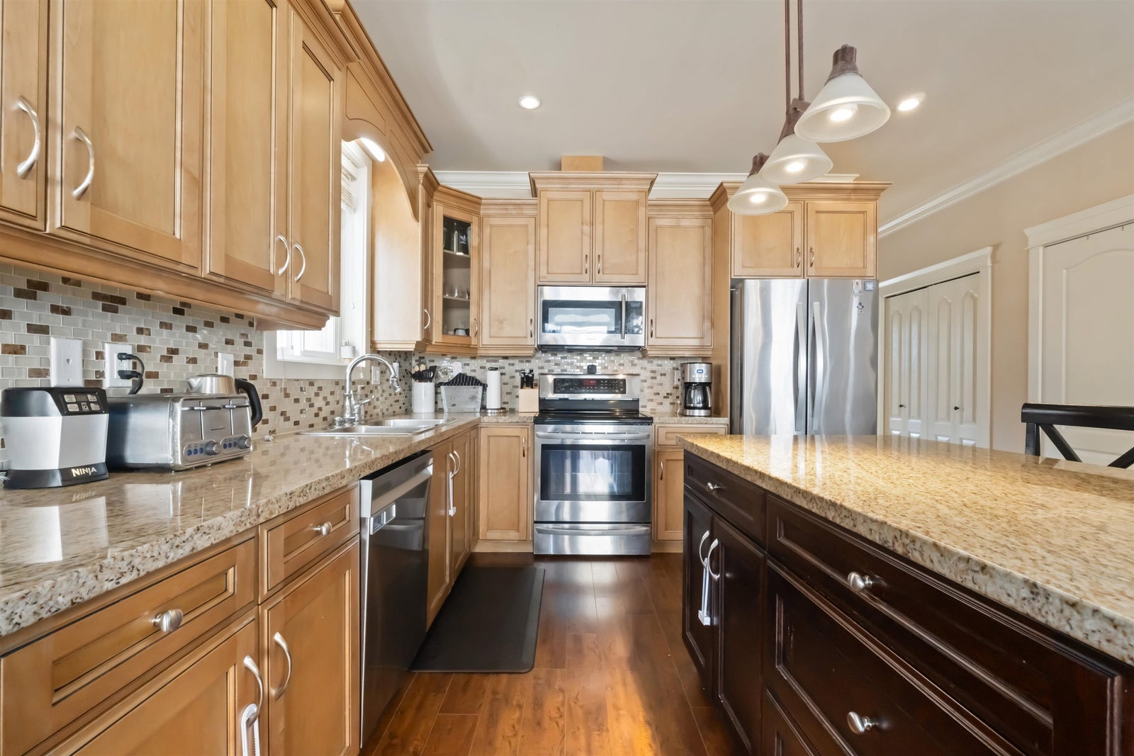 Welcome to 19391 72nd Ave in Clayton Heights. This 6-bedroom plus den (or 7th) 5-bathroom home with 3 kitchens offers space and flexibility. The main home features a granite island kitchen, open living area, and covered pergola. Upstairs has 3 bedrooms incl. a primary with walk-in, ensuite, and laundry. The basement includes a legal 2-bed suite with separate entry plus a 1-bed legal coach house above the detached garage — ideal mortgage helpers. Fully fenced yard, extra parking, walk to Hazelgrove Elementary, parks, shops, and transit. Minutes to Costco, Willowbrook Shopping Centre, Langley Events Centre, and nearby grocery and dining including Fruiticana, Save-On-Foods, Starbucks, and local restaurants. Showings by appointment, preferably weekends. Offers anytime. Call your Realtor today!