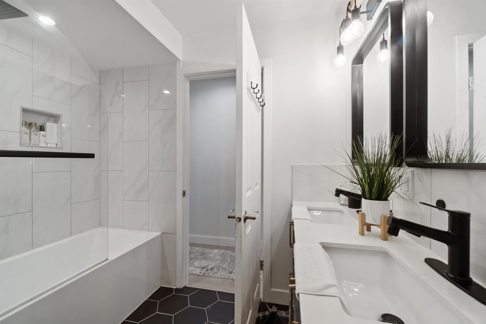 Welcome to 309 Gloucester Court, a beautifully updated family home on a quiet cul-de-sac with a picturesque view of Port Mann bridge. Set on a private treed lot, this home features updates to the kitchen, spa-like bathrooms, flooring, balcony, roof, and hot water tank - providing style and peace of mind. Bright, open living areas connect to a gourmet kitchen ideal for everyday meals or entertaining. Upstairs, the spacious primary retreat boasts a luxurious ensuite, while downstairs a finished basement suite with separate entrance and laundry adds flexibility for in-laws, guests or rental income. Outdoors, enjoy lush yards with manicured gardens, a peaceful sundeck and an inviting patio. Just minutes to Coquitlam Centre, Dr. Charles Best Secondary School, IKEA, Canadian Tire and Superstore.